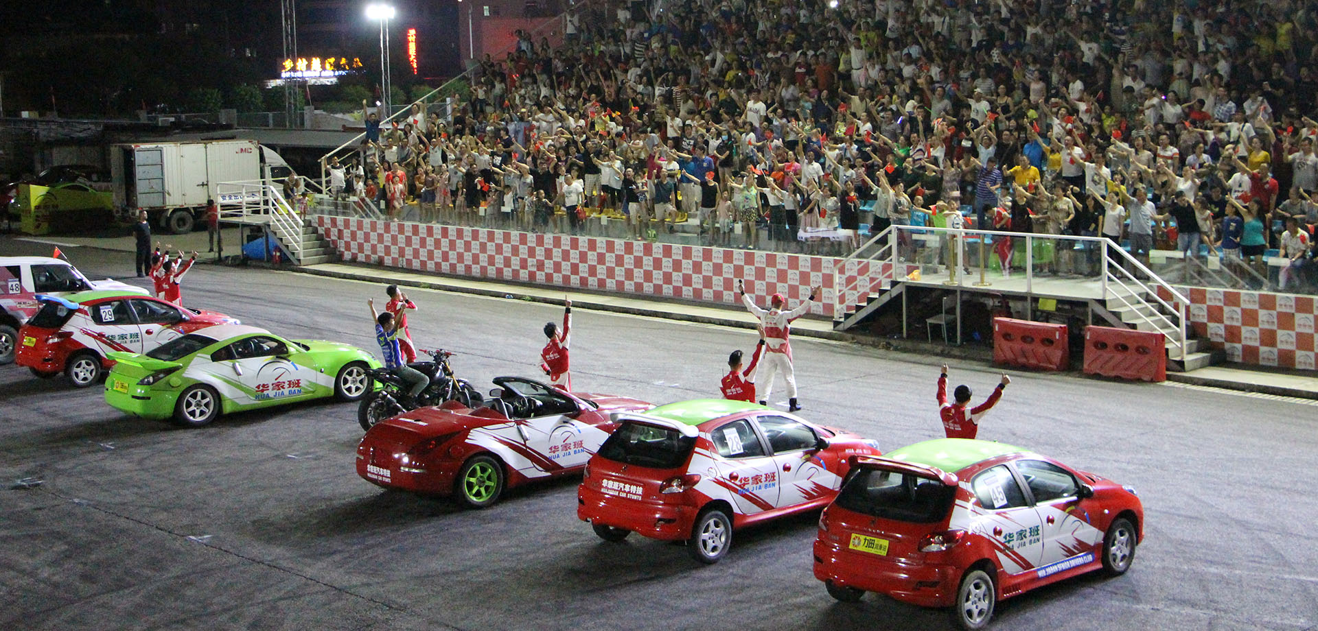 短短幾年發展,如今公司旗下已擁有國內外40余位簽約的頂級職業車手,組建了多只支能征善戰的獨立分隊,固定表演場地5處,而且在繼續增加,年觀眾總接待量突破了200萬人次??偛考盎刈溆谝郎矫婧#L景旖旎的廣東惠州巽寮灣,可同時容納1300人觀看表演。是國內規模最大,設施最齊全,陣容最豪華的汽車特技表演場地,創造了又一個中國之最。華家班這支鐵軍,正向著華慶先先生設立的“創造中國人世界頂級汽車特技巔峰”這一目標,勇往直前!